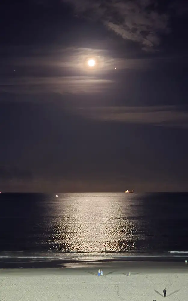 Na virada do ano havia quase um milhão de pessoas na praia vendo um show artificial de luzes. Hoje quase ninguém veio contemplar um dos mais belos shows da natureza. (Via A. A. de Assis)