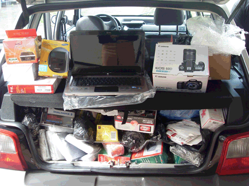 Entre as apreensões realizadas pela Polícia Rodoviária Estadual no último final de semana, na área da 4ª Companhia de Polícia Rodoviária Estadual, estão 72 caixas de cigarros, vários óculos de sol, relógios, aparelhos de barbear masculino, depiladores elétricos femininos e várias memórias para vídeo game. A mercadoria foi avaliada em R$ 12 mil e estava num ônibus de sacoleiros fiscalizado em Peabiru. Cinco pessoas foram identificadas como sendo proprietárias da mercadoria. Em Santo Inácio, ontem, numa Saveiro com placa de São José do Rio Preto (SP) foram encontradas treze caixas de energéticos, alguns brinquedos e uma arma de calibre 38. Em Floresta, a equipe Rotam apreendeu dezenas de aparelhos eletrônicos vindos do Paraguai num Fiat Uno de Patrocínio (MG), que levava aproximadamente 25 Play Station II, 20 máquinas digitais, 1 máquina fotográfica Canon profissional, 40 celulares, perfumes, HD’s, notebooks e outros. Em média, as mercadorias custaram U$ 20 mil e seriam vendidas num shopping de Minas Gerais.