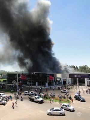 O Open Shopping Cianorte, inaugurado há duas semanas, foi atingido hoje por um incêndio.Foto João Valezi/Tribuna de Cianorte. Saiba mais.