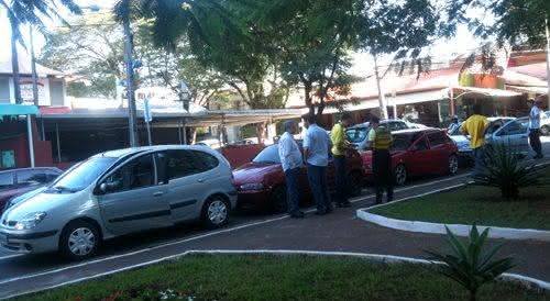 Um Gol e um Corsa de Maringá se chocaram perto do meio-dia desta quinta-feira e três pessoas foram hospitalizadas com ferimentos graves, sem risco à vida. O acidente aconteceu na rua Machado de Assisa Arlindo Planas, perto da linha férrea, no Maringá Velho. Ficaram fceridos Ana Paula Matsumoto, 22, que dirigia o Corsa, Dercílio Amâncio Fonseca, 42, que dirigia o Gol, que capotou, e Antonio Cãndido de Lima, 44. As fotos são de Márcio Nakagawa.