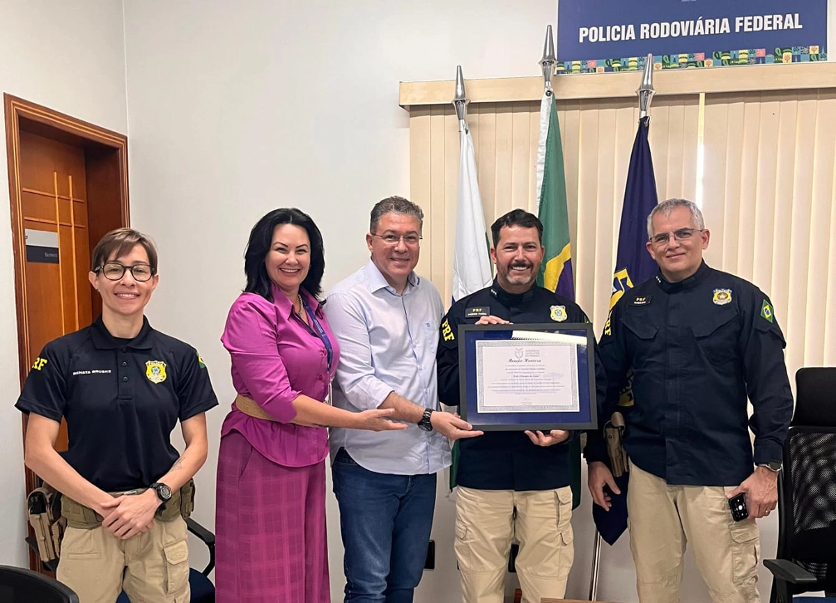 Pedro Marques de Faria, inspetor chefe da Polícia Rodoviária Federal nas regiões de Maringá, Campo Mourão e Paranavaí, foi agraciado com a Menção Honrosa da Assembleia Legislativa do Paraná. A entrega foi realizada pelo deputado estadual Dr. Leônidas Favero, que fez questão de destacar o impacto positivo do trabalho da PRF na segurança das rodovias e no combate à criminalidade.