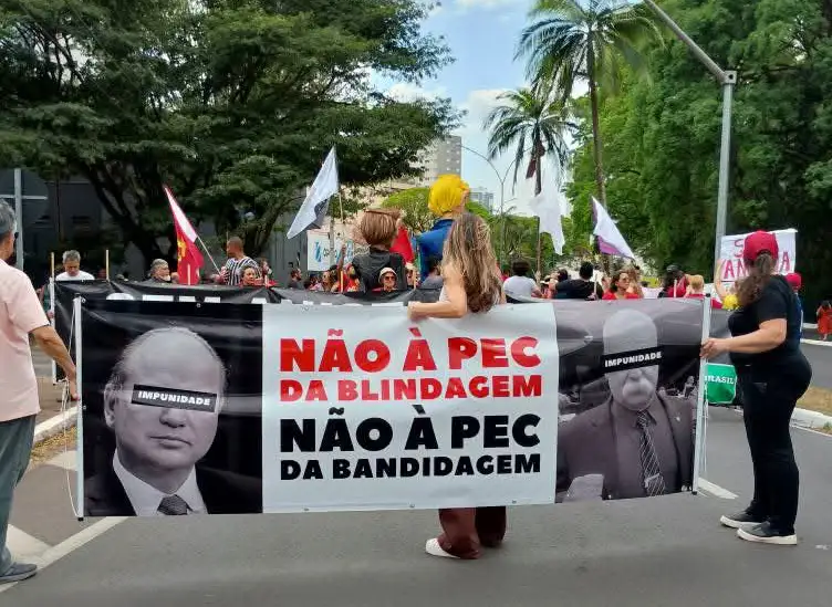 Todos contra a PEC da Blindagem e a anistia a golpistas. Mais imagens da manifestação em Maringá estão aqui. A chamada PEC da Blindagem altera a Constituição para proteger parlamentares de ações nas esferas criminal e cível. Dos deputados por Maringá, Ricardo Barros (PP) e Sargento Fahur (PSD) votaram a favor da blindagem de políticos; Luiz Nishimori (PSD) votou não. Confira todos os votos aqui.