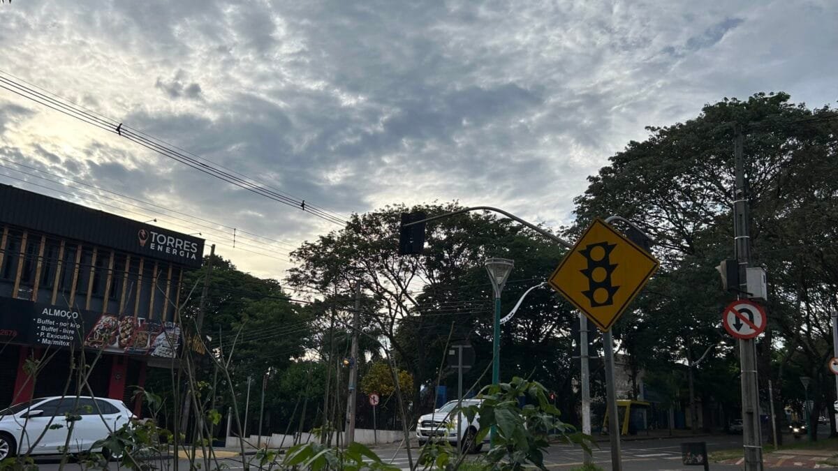 Dia parcialmente nublado com pancadas de chuva (probabilidade de 78%), temperatura máxima de 36˚C, umidade relativa entre 31% e 73% e pôr do sol às 18h54, segundo o Simepar.