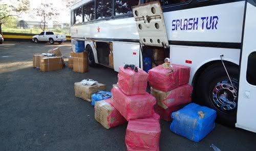 Policiais rodoviários da Rotam apreenderam no início desta terça-feira um ônibus abarrotado com mercadorias do Paraguai na PR-317, entre Floresta e Peabiru. Nele havia vários fardos de roupas, brinquedos, óculos, controles de PlayStation, DVDs, acessórios de celulares, telefones, entre outros eletrônicos e miudezas, avaliadas em R$ 200 mil. Os dezesseis passageiros foram liberados, pois a cota individual não ultrapassava a permitida por lei. Todos foram identificados e responderão o processo por descaminho em liberdade. O ônibus com as mercadorias foi encaminhado para o depósito da Receita Federal.