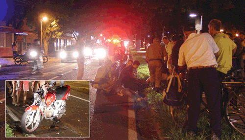Atualizado – Um acidente agora à noite, na avenida Mandacaru, defronte o Hospital Universitário Regional de Maringá, feriu os dois ocupantes de uma motocicleta que passou a lombada eletrônica em alta velocidade e chocou-se contra a traseira de um Gol que fazia a conversão à esquerda. Na moto estavam um rapaz de 20 anos André Luiz Bassalto de Souza, e sua acompanhante, Afaela Key Tanape, 19, que depois de atendidos por socorristas foram hospitalizados; ele tinha ferimentos graves.