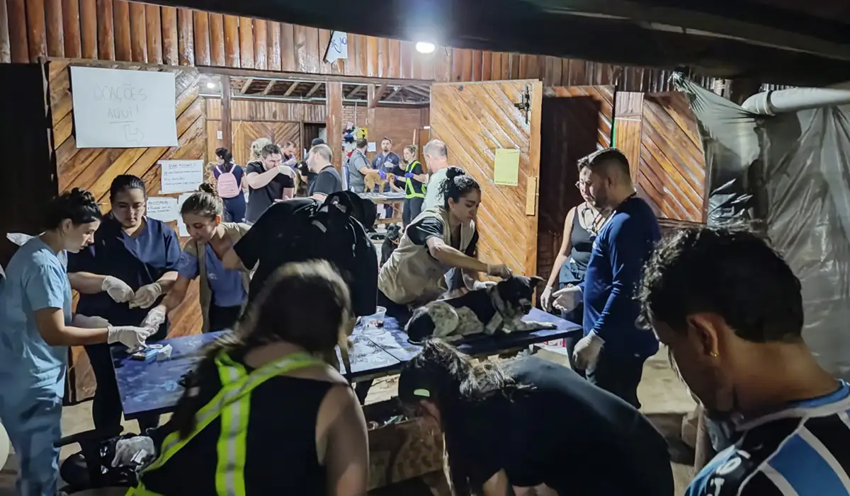 Veterinários paranaenses mobilizados pela Rede Estadual para Atendimento de Animais em Situação de Desastre montaram um hospital de campanha veterinário em Canoas, na Região Metropolitana de Porto Alegre, para atender os animais que são resgatados nas enchentes do Rio Grande do Sul. A unidade foi estruturada de forma emergencial