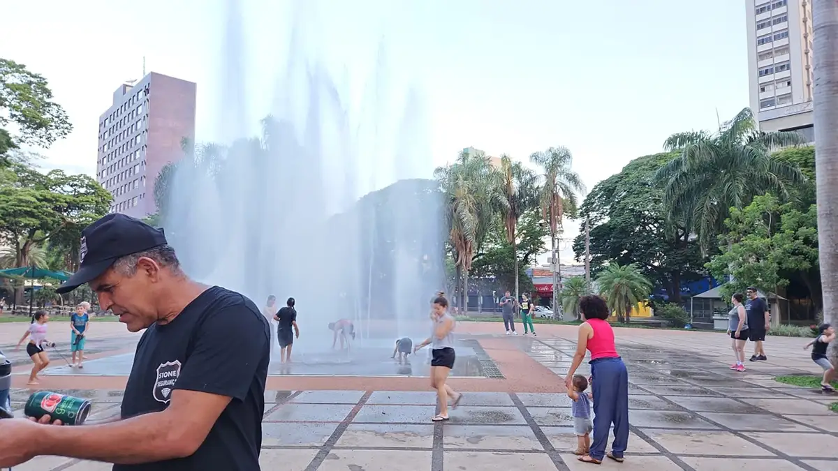 Com o forte calor de ontem, a criançada tomou conta da praça Napoleão Moreira da Silva. Foto de Jorge Villalobos.