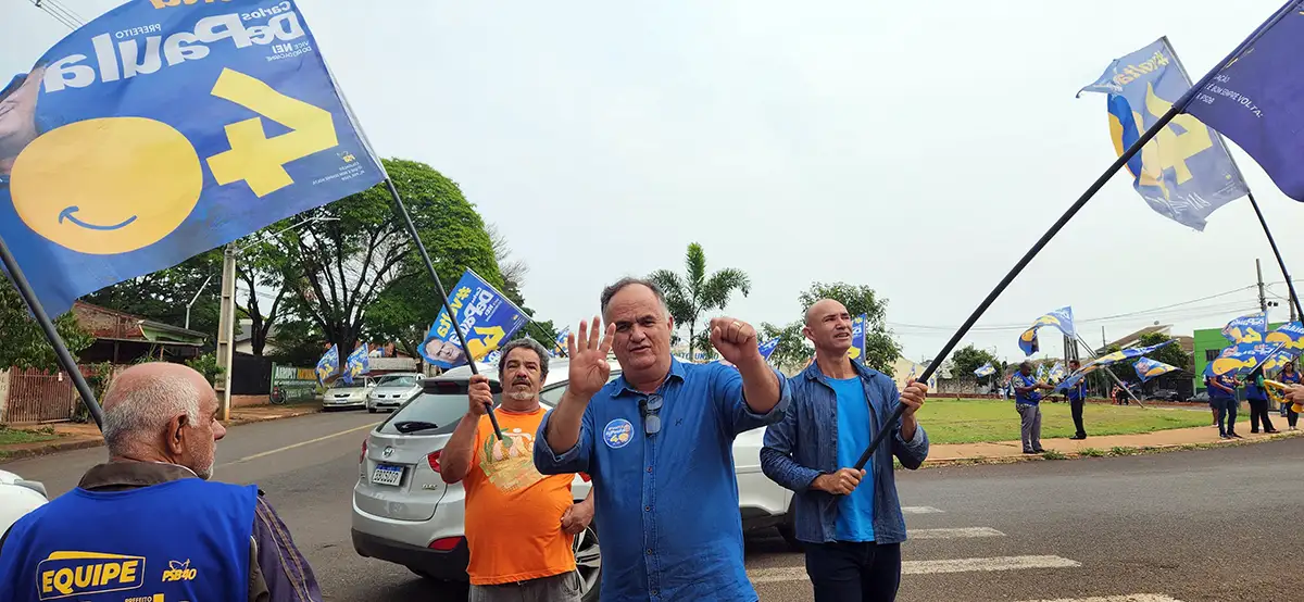 A campanha de De Paula (PSB) em Sarandi, depois da liberação pelo TRE-PR, esta semana, ganhou força. Nesta manhã ele participou de mais um bandeiraço, com, ânimo redobrado. Foto de Jorge Villalobos.