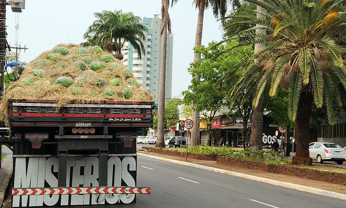 Se alguém necessita melancias para usar penduradas no pescoço, eis aqui um caminhão… Foto de Jorge Villalobos.