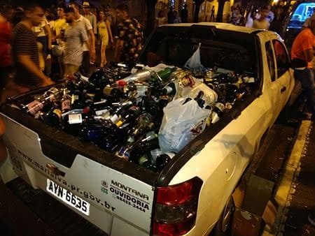 Em Marialva, uma ação da prefeitura recolheu centenas de garrafas na virada do ano. As pessoas trocaram as garrafas por cupons e concorreram a prêmios.