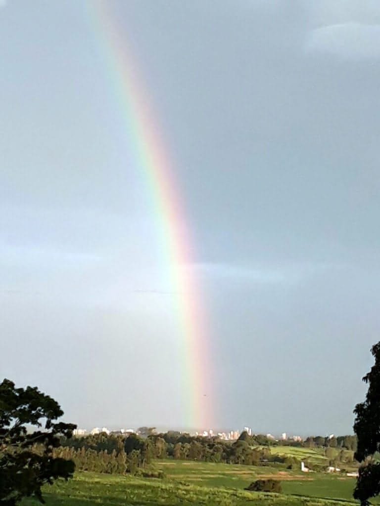 O arco-íris ao final da tarde parece ter anunciado uma boa semana. Acima, foto tirada por leitor em Maringá. Abaixo, o arco-íris fotografado do distrito de Iguatemi.