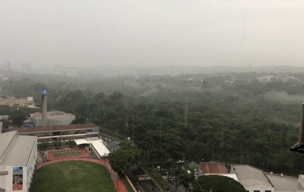 A queda de uma grande árvore assustou quem caminhava nesta manhã na pista do Bosque Dois (dos Pioneiros), na avenida Nóbrega.