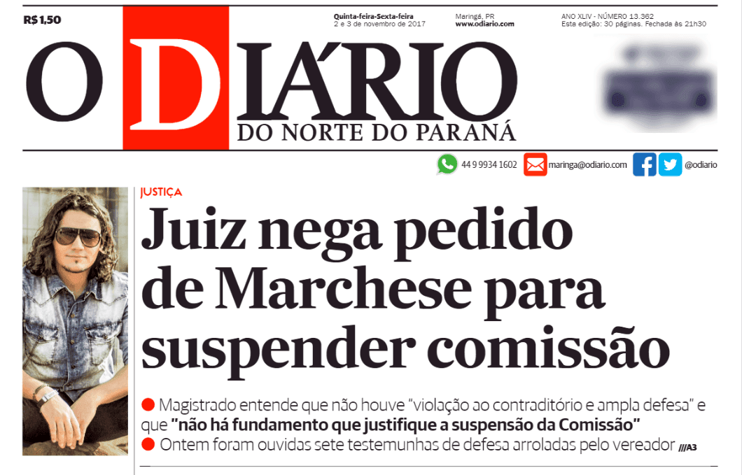 A desembargadora Vilma Régia Ramos de Rezende, da 9ª Câmara Cível do Tribunal de Justiça, negou recurso do vereador Homero Marchese, investigado por uma Comissão Processante por quebra de decoro parlamentar. Ele ingressou com ação para retirar comentários publicados no Blog do Rigon, a quem vem agredindo, da tribuna da câmara municipal e nas redes sociais, desde que tomou posse.Continue lendo ›