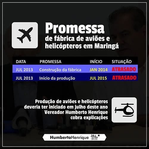 Em julho de 2015, o então vereador Humberto Henrique, fazendo coro à campanha iniciada neste modesto blog, cobrou as promessas feitas pelas administrações Pupin/Barros em relação à fábrica de helicópteros.