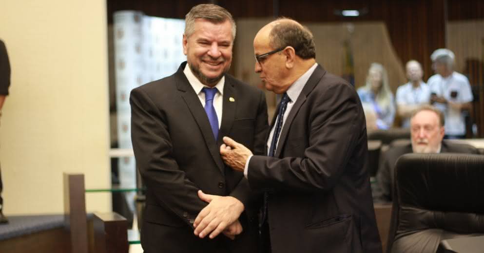 Os deputados Delegado Jacovós (PR) e Dr. Batista (PMN) conversam durante sessão da Assembleia Legislativa. Continue lendo ›
