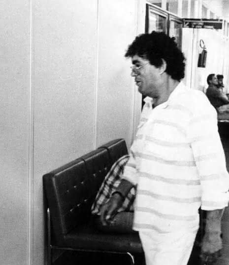 Foto de Edson Guitti, o Burzega, nos anos 80: o escritor e jornalista Manoel Cabral no Fórum, dirigindo-se para a audiência numa ação por agressão que moveu contra o comediante Mussum, dos Trapalhões.