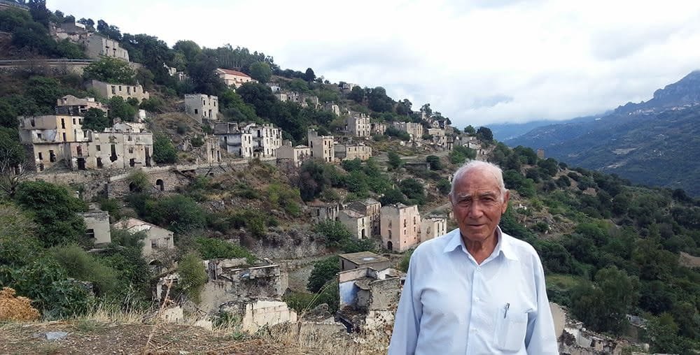 Pietro Porcu comemora hoje 90 anos de idade. Ele chegou em Maringá em 27 de abril de 1953. Na foto Pietro aparece na sua cidade natal Gairo (Sardegna, Itália), abandonada pelos moradores, pois sofreu com várias enchentes nos anos 50.