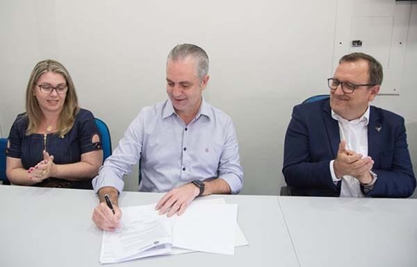 A transferência de gestão foi assinada dua 19 pelo prefeito Ulisses Maia, pelo reitor da UEM, Julio Damasceno, e pela secretária de Educação, Gisele Colombari.