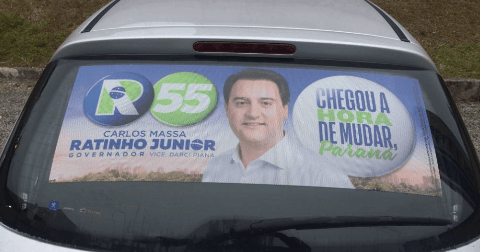 No primeiro dia de propaganda eleitoral, começa a circular o material de vários candidatos, como o perfurade acima, de Ratinho Junior, em Curitiba.