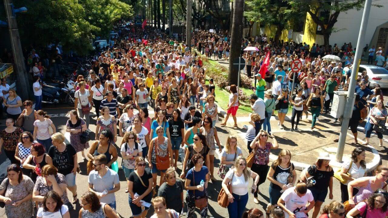 A manifestação contra a reforma da Previdência em Maringá reúne 10 mil pessoas, segundo os organizadores.