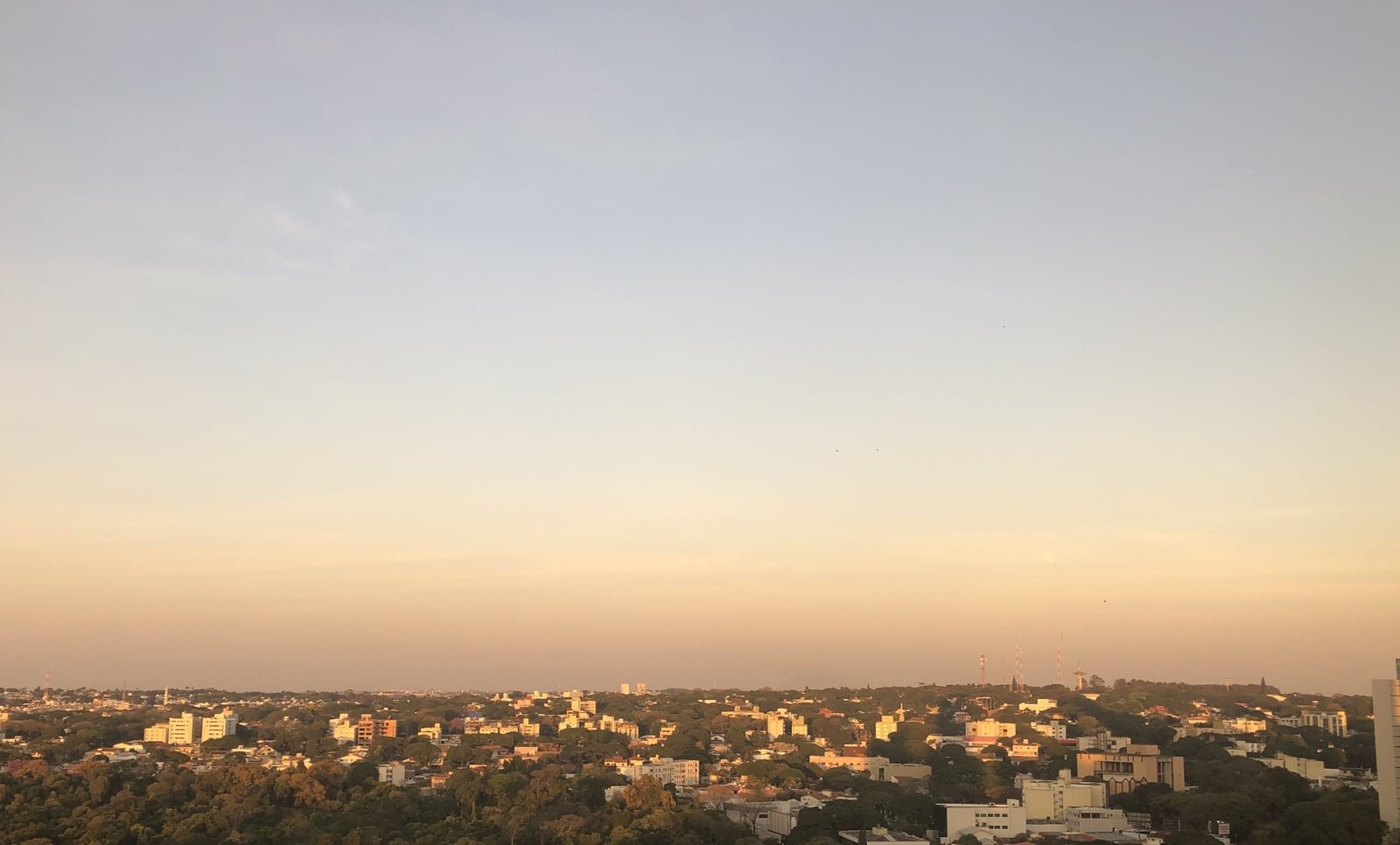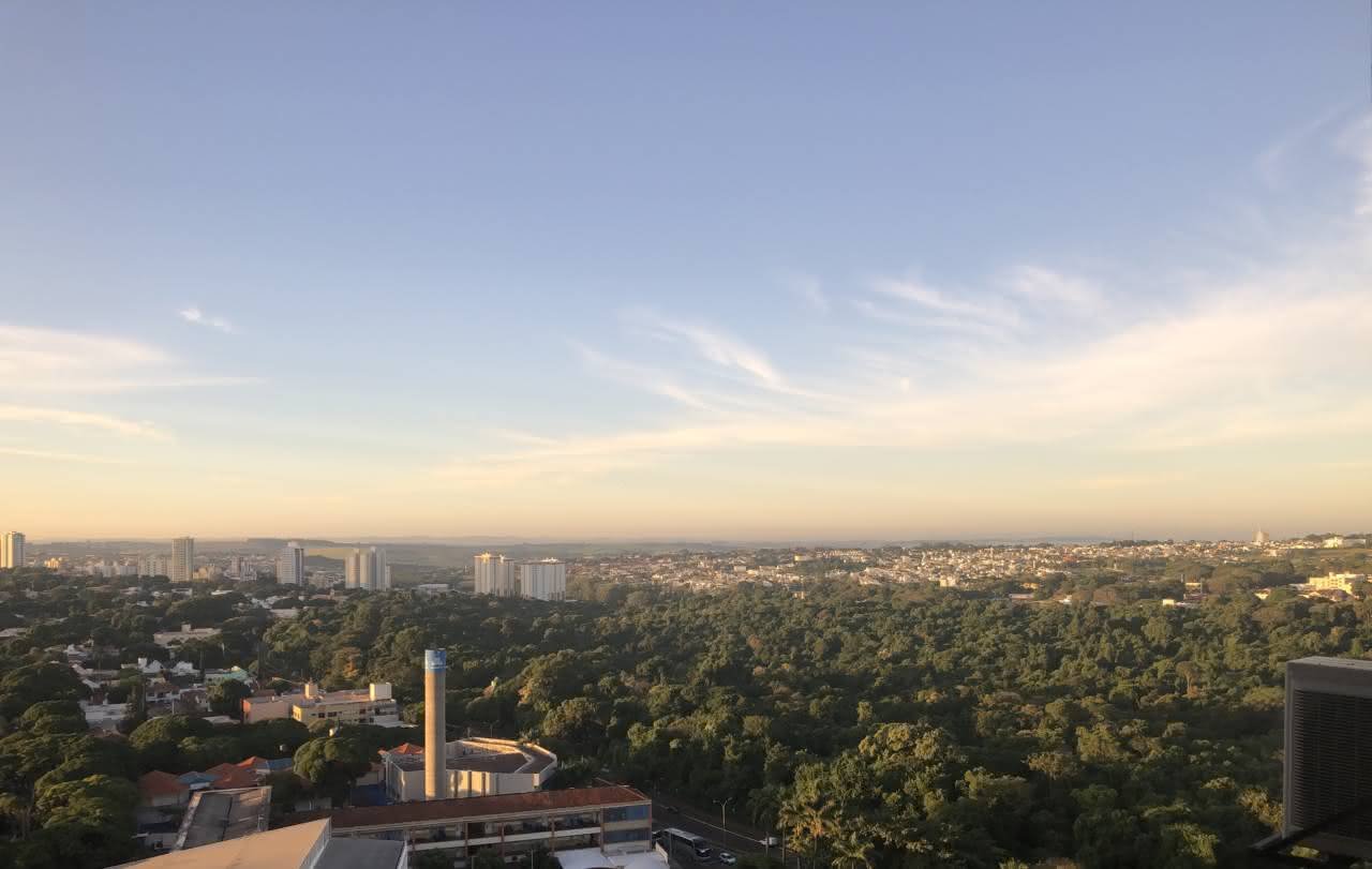 Sexta-feira com tempo parcialmente nublado. Temperatura máxima de 30 °C, 5% de probabilidade de chuva e pôr do sol às 18h29, segundo o Inpe.