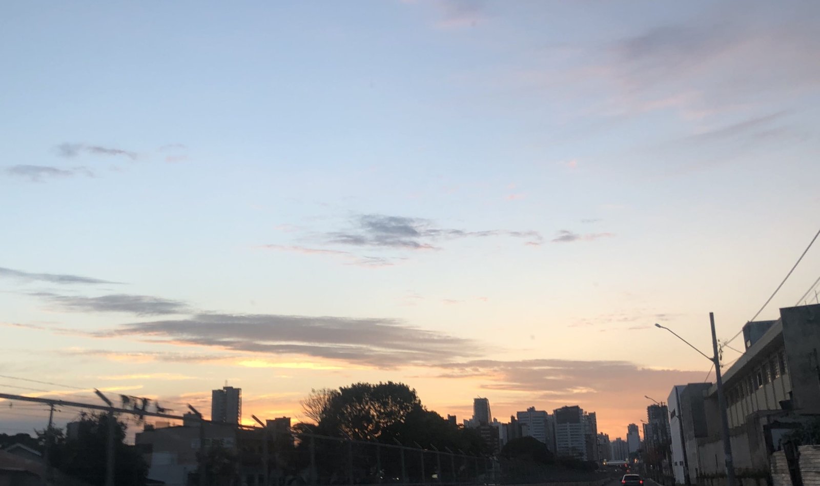 Sexta-feira com tempo parcialmente nublado pela manhã e com pancadas de chuvas, segundo no Inpe, à tarde e à noite. Temperatura máxima de 24 °C e pôr do sol às 17h52.