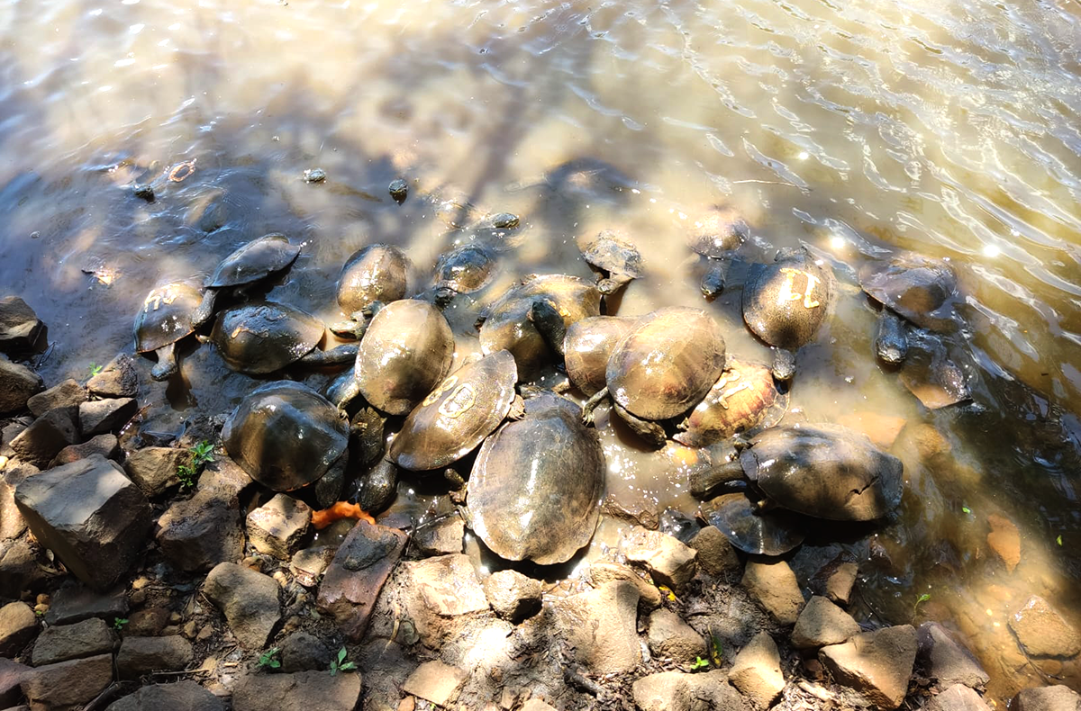 Leitor fez o registro e comenta que impressiona a quantidade de espécies de tartarugas existentes no lago do Parque do Ingá. Na foto, elas disputam alimentos.
