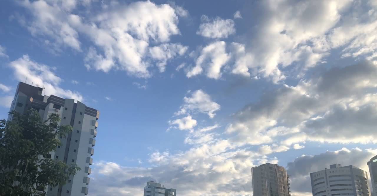 Terça-feira com previsão de tempo nublado e pancadas de chuva. Temperatura máxima de 34 C°.