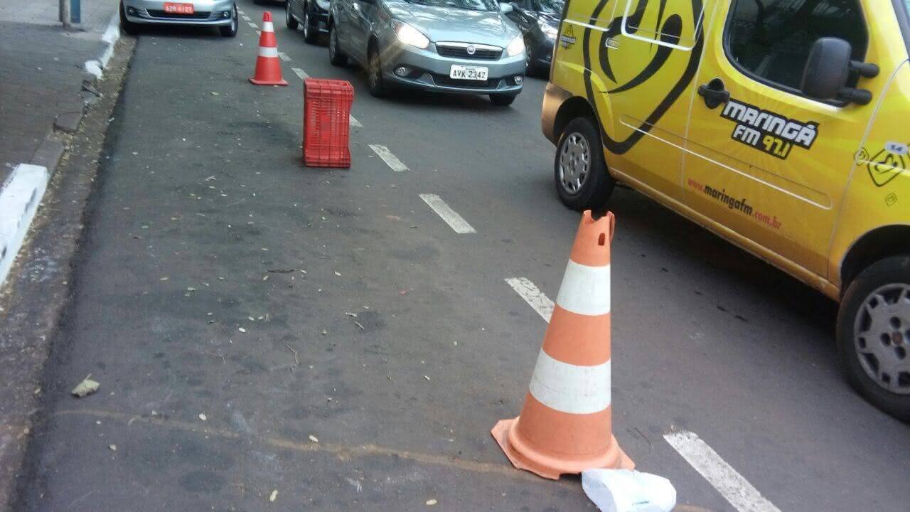 Leitor que enviou a foto informa que o despachante acima, usando cones, costuma ‘segurar’ vagas de estacionamento na rua Marquês de Abrantes e também na avenida Guaíra, no fundo da quadra do Corpo de Bombeiros, em Maringá. A foto foi feita hoje. Ele reclama que o estabelecimento não tem o direito de tomar essas vagas para si. “Essa rua é super disputada para vagas e, para piorar, ele segura duas”, acrescenta, aguardando providências do poder público.